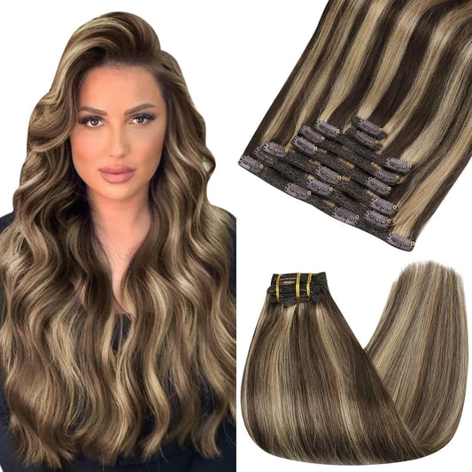 Brown Balayage Clip in Extensions Mix Caramel Blonde Color #2/27/2