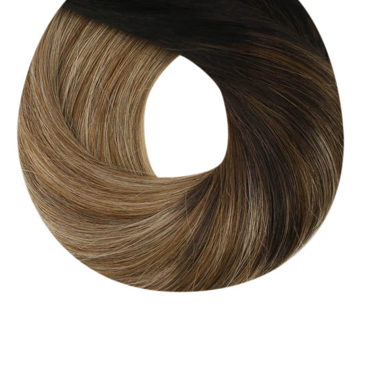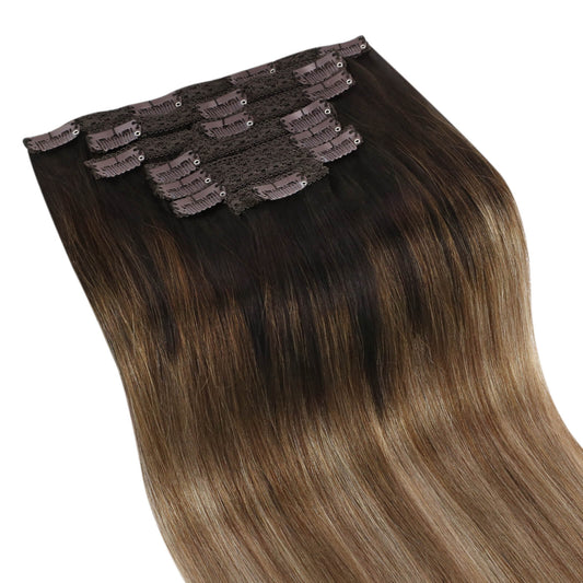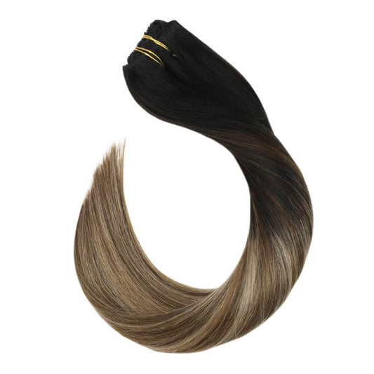 Balayage Hair Extensions Clip in Black Ombre Brown Blonde #1b/3/27