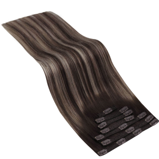 Hair Extensions Clip in Balayage Brown with Ash Blonde Color #4/18/4