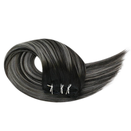 Clip in Hair Extensions Balayage Black with Silver Hair 1b/gray