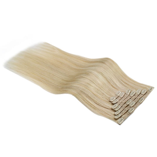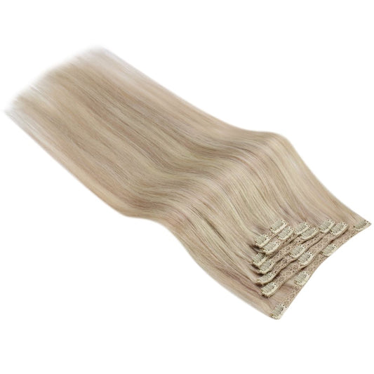 Ash Blonde Highlighted Color Clip in Human Hair Extensions #18/613