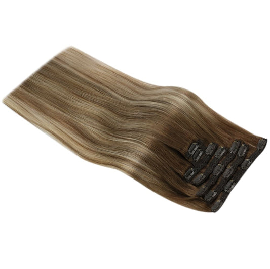 Balayage Clip in Human Hair Extensions Light Brown to Blonde 6/60