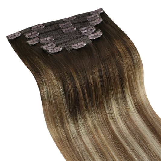 Balayage Hair Extensions Clip in Brown Ombre with Blonde Hair #2/6/12
