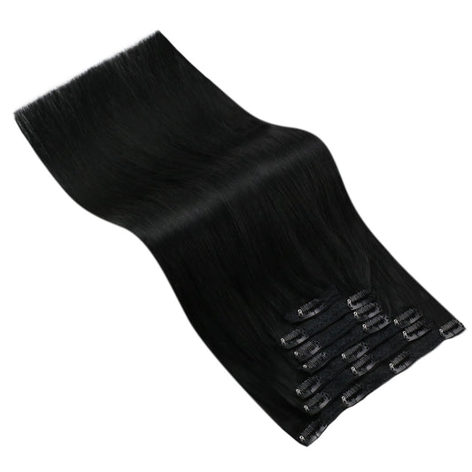Clip in Hair for Fullness Pure Color Natural Black Color Extensions #1b