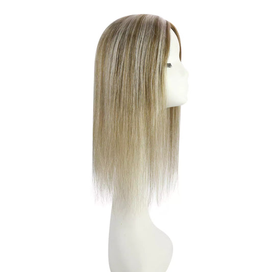 [Density Upgrade 150%] Hand Made Hair Topper Real Human Hair For Loss Hair Highlighted Blonde Color #8P60