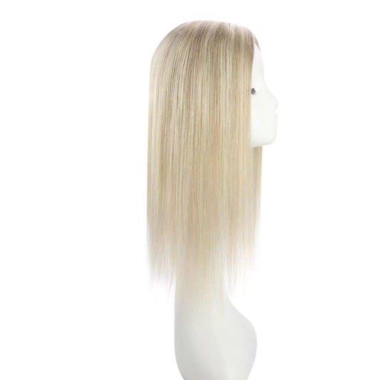 [Density Upgrade 150%] Mono Base Human Hair Topper Without Bangs For Loss Hair Highlighted Color Blonde Hair 18/613