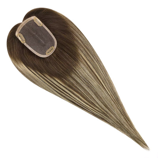 [Density Upgrade 150%] Topper Hairpiece Seamless Hair Toppers Balayage Ombre Brown Blonde Hair 4/27/4
