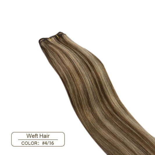 Weft Hair Extensions Sew in Brown with Golden Blonde Color #4/16