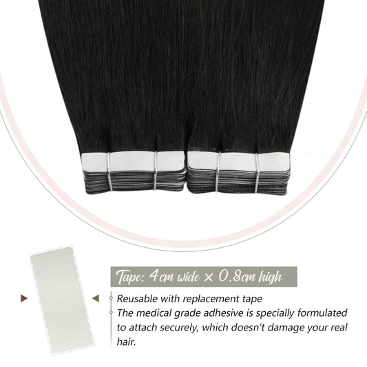 Human Hair Tape in Extensions Jet Black Color for Thin Hair #1 | Ugeat