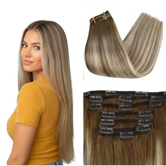 [Pre-Sale][Thick Volume 135-150Gram] Clip Ins Human Hair Chestnut Platinum #6/60/6