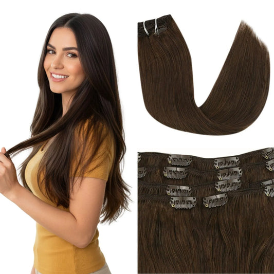 [Pre-Sale][Thick Volume 135-150Gram] Human Hair Clip Ins Dark Brown #2
