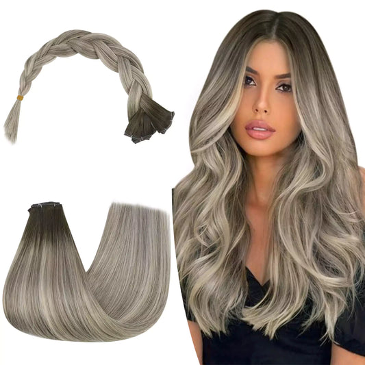 [Virgin Hair] Professional Hair Extensions Virgin Hybrid Weft Extensions Balayage #4/27/4