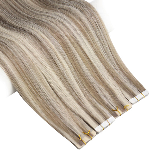 [Virgin Hair] Professional Tape in Hair Extensions Virgin Human Hair Highlight #8P60