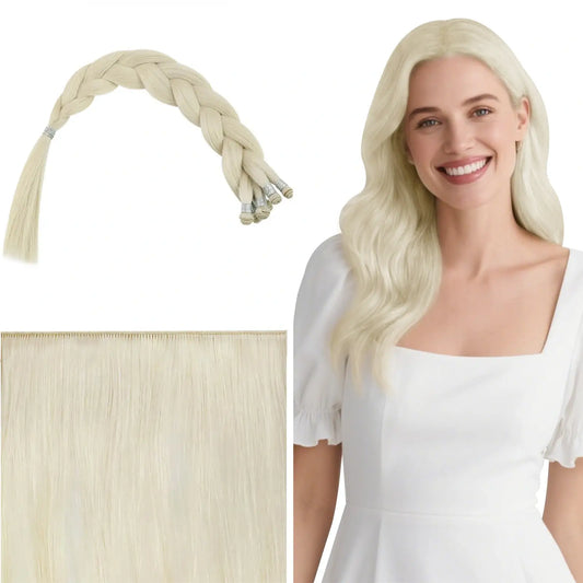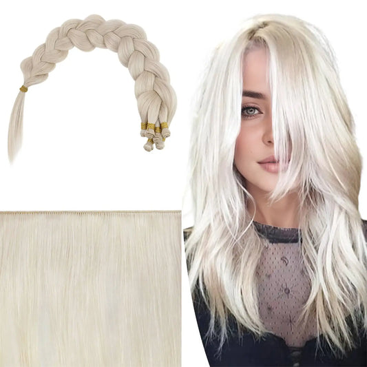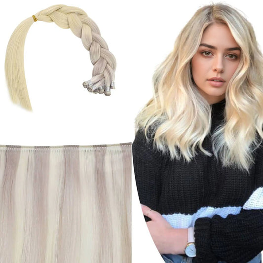 [Virgin+] Full Cuticle Virgin Hand-tied Real Human Hair Weft Platinum Blonde #1000