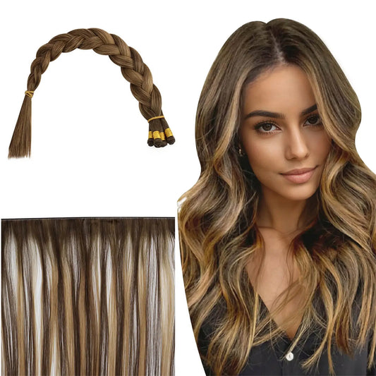 [Virgin+] Hand-tied Real Human Hair Weft Highlithed Brown With Blonde #P8/60