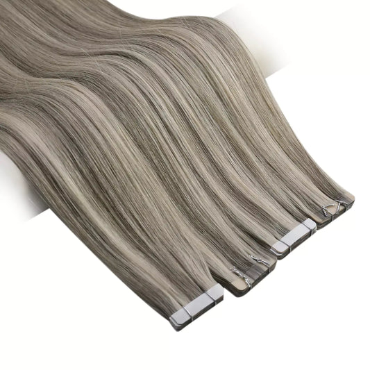 [Virgin+] Balayage Virgin Tape in Hair Extensions For Black Hair #1B/Silver/1B
