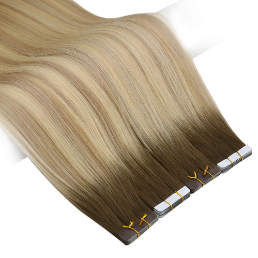 [Virgin+] Balayage Omber Brown to Blonde Virgin Tape in Hair Extensions #8/60