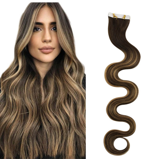 [Pre-sale] Wavy Injection Tape in Extensions Balayage Virgin Human Hair 10Pcs #2/18/22