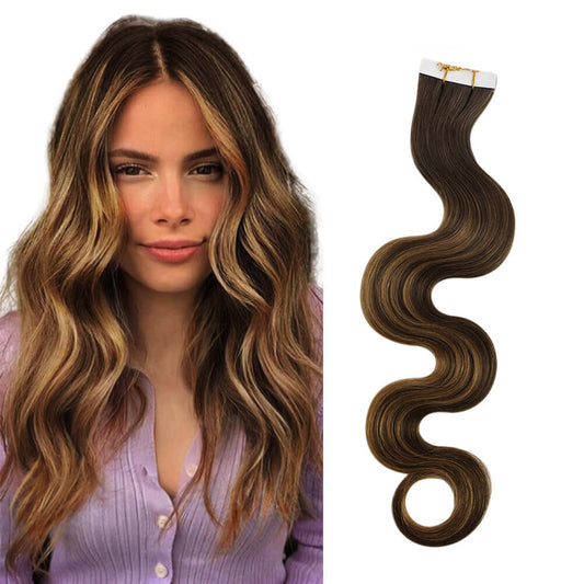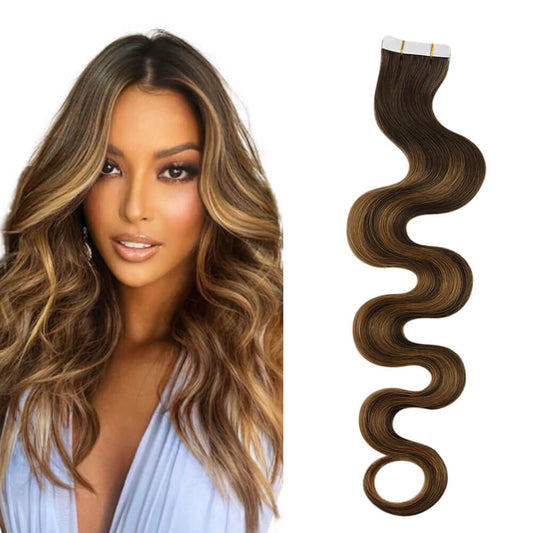 [Pre-sale] Seamless Inject Tape in Hair Extensions Wavy Virgin Hair Wholesale Balayage 10Pcs #4/27/4