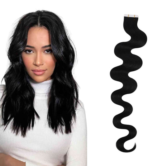 [Pre-sale] Invisible Injected Tape in Hair Extensions Curly Virgin Human Hair Off Black 10Pcs #1B