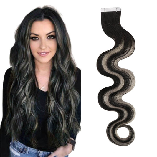 [Pre-sale][Virgin Hair] Wave Tape in Hair Extensions 100% Human Hair Balayage 50G #1B/Silver/1B