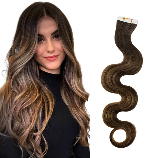 [Pre-sale][Virgin Hair] Wavy Tape in Extensions 100% Human Hair Balayage 50G #4/10/16