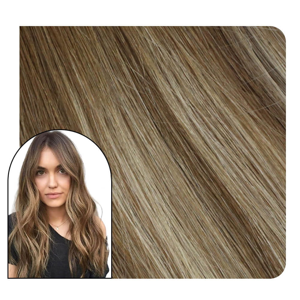 Clip in Remy Hair Extensions Human Hair Balayage Ombre Color #6/60/6 Brown with Blonde