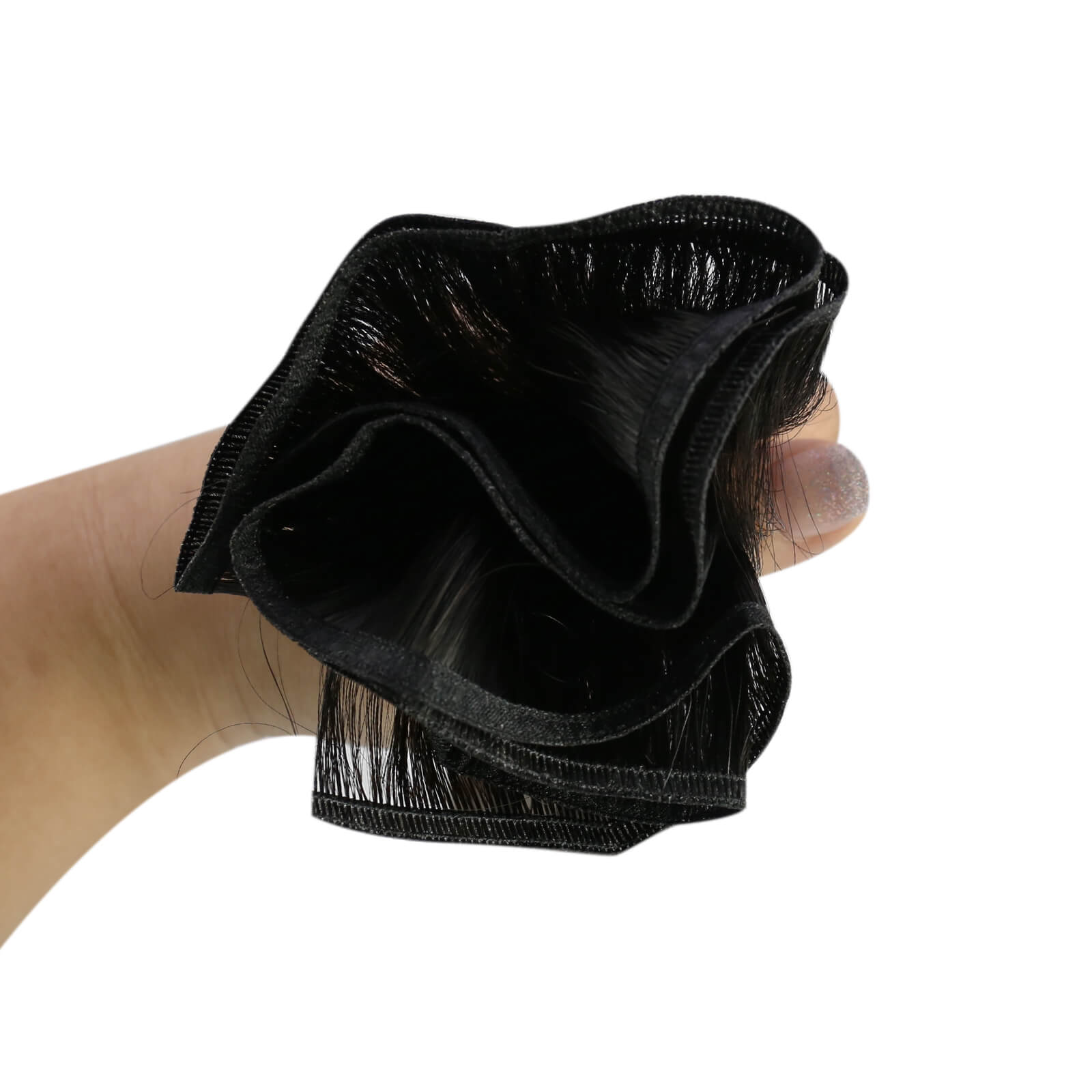 Virgin+ Flat Silk Weft is a weft sealed by a super-thin piece of silk base. It currently works by folding the hair over at the top to hold the hair into the weft-style extension.Virgin+ Flat Silk Weft can be cut track weft into any width. The highest quality hair and various methods of use make Virgin+ Flat Silk Weft very popular!