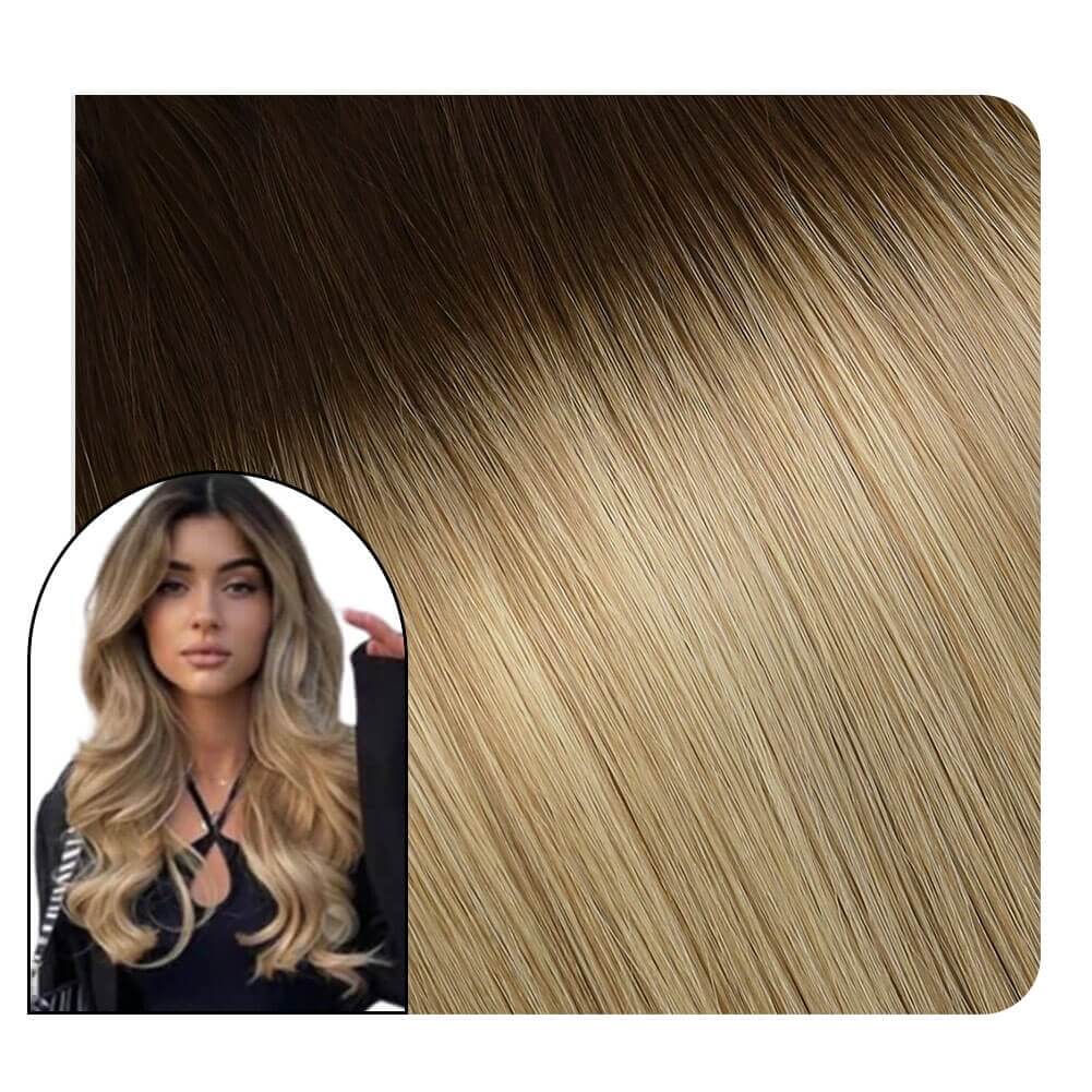 [Virgin+] Machine Human Hair Weft Balayage Brown With Blonde #3/8/22